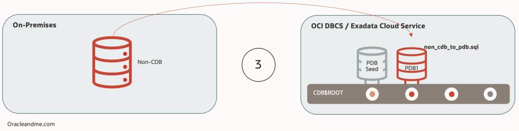 - In both cases, you will use noncdb_to_pdb.sql script to convert the DB dictionary into a PDB type, and establish the horizontal partitioning (the link between the new PDB and the CDB) of the CDB-PDB dictionary .